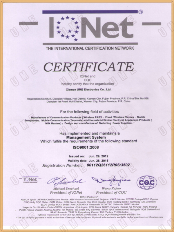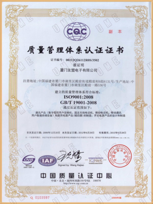 廈門友盟電子有限公司(XIAMEN UME ELECTRONICS CO.,LTD.)座落在美麗的東海之濱城市——廈門,是一家高速成長中的開關(guān)電源制造商、并提供高端通訊電子產(chǎn)品加工服務(wù)。公司致力于向客戶提供創(chuàng)新的滿足其需求的產(chǎn)品和服務(wù),為客戶創(chuàng)造長期的價(jià)值和潛在的增長。公司以“高安全性、高信賴性”為己任,追求產(chǎn)品的高質(zhì)量、高性能、以及高效率的售后服務(wù),致力于打造自有品牌UME系列產(chǎn)品。